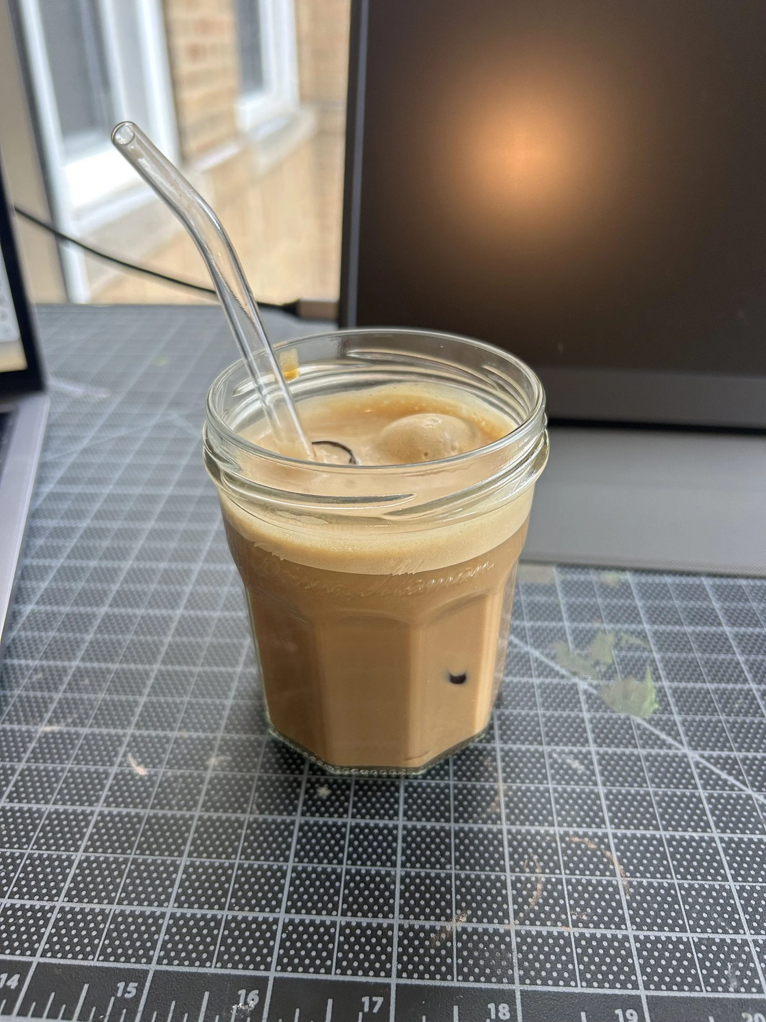A homemade, perfectly proportioned iced caramel latte (photo attached)…. Update TWO lattes